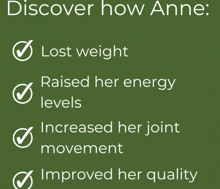 Here’s how she lost weight, raised her energy levels, increased her joint movement [and re-duced the pain] and improved her quality of sleep: